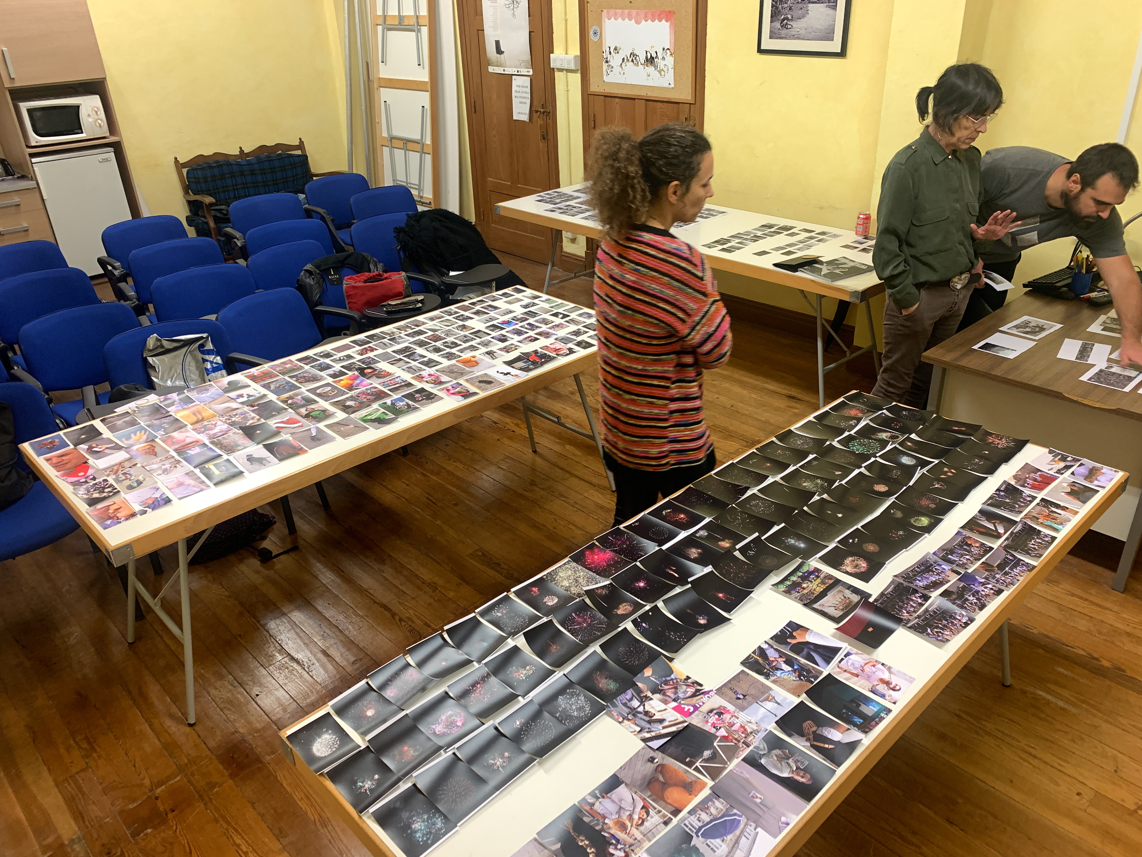 En el centro del fotozine se despliega un poster formado por una superposición semitransparente de más de 70 fotografías históricas de los años 50, 60, 70 y hasta los 90 centradas en el reloj de la torre a las 18:00 de la tarde. Una transición de la memoria en blanco y negro al color.
